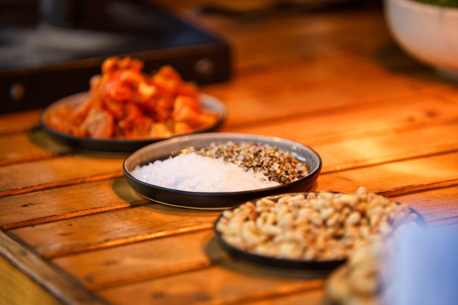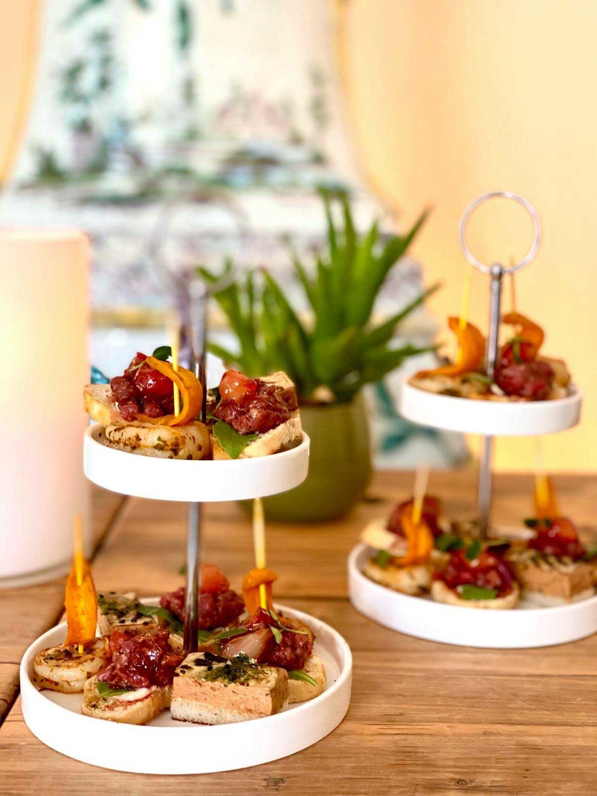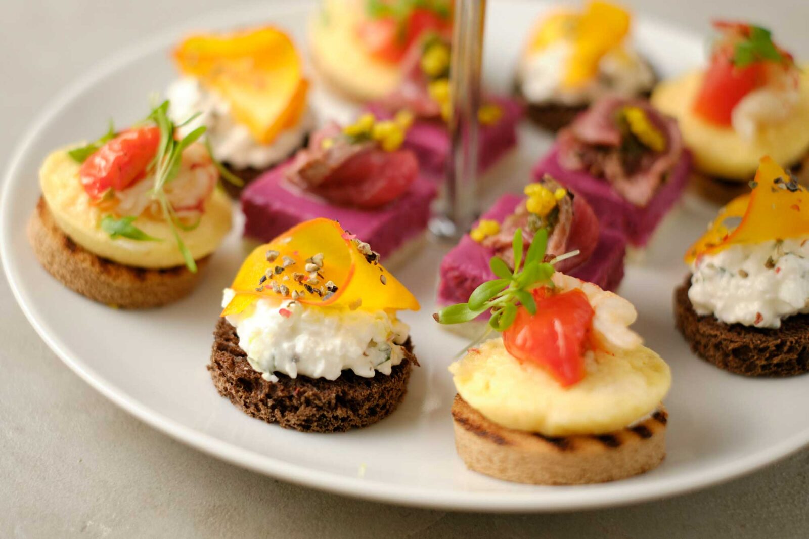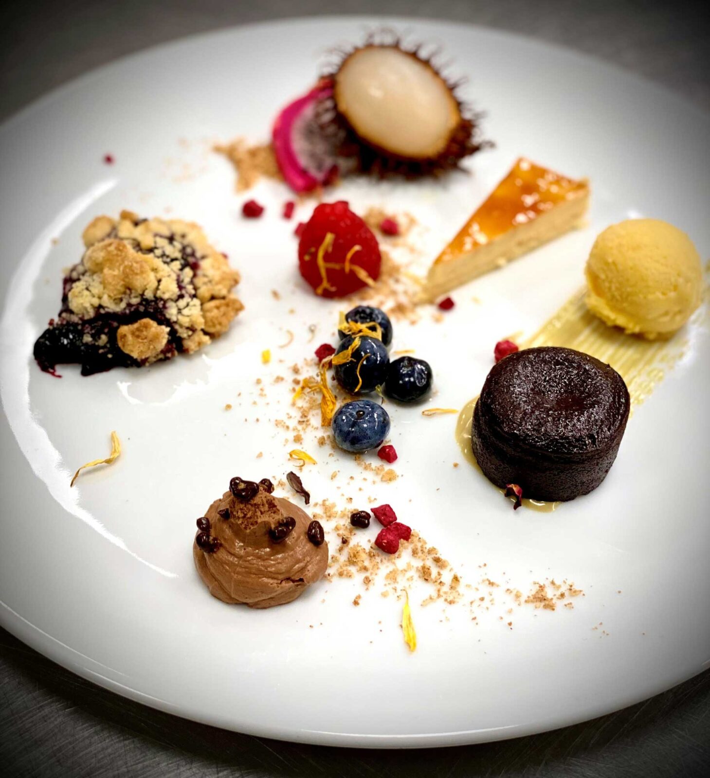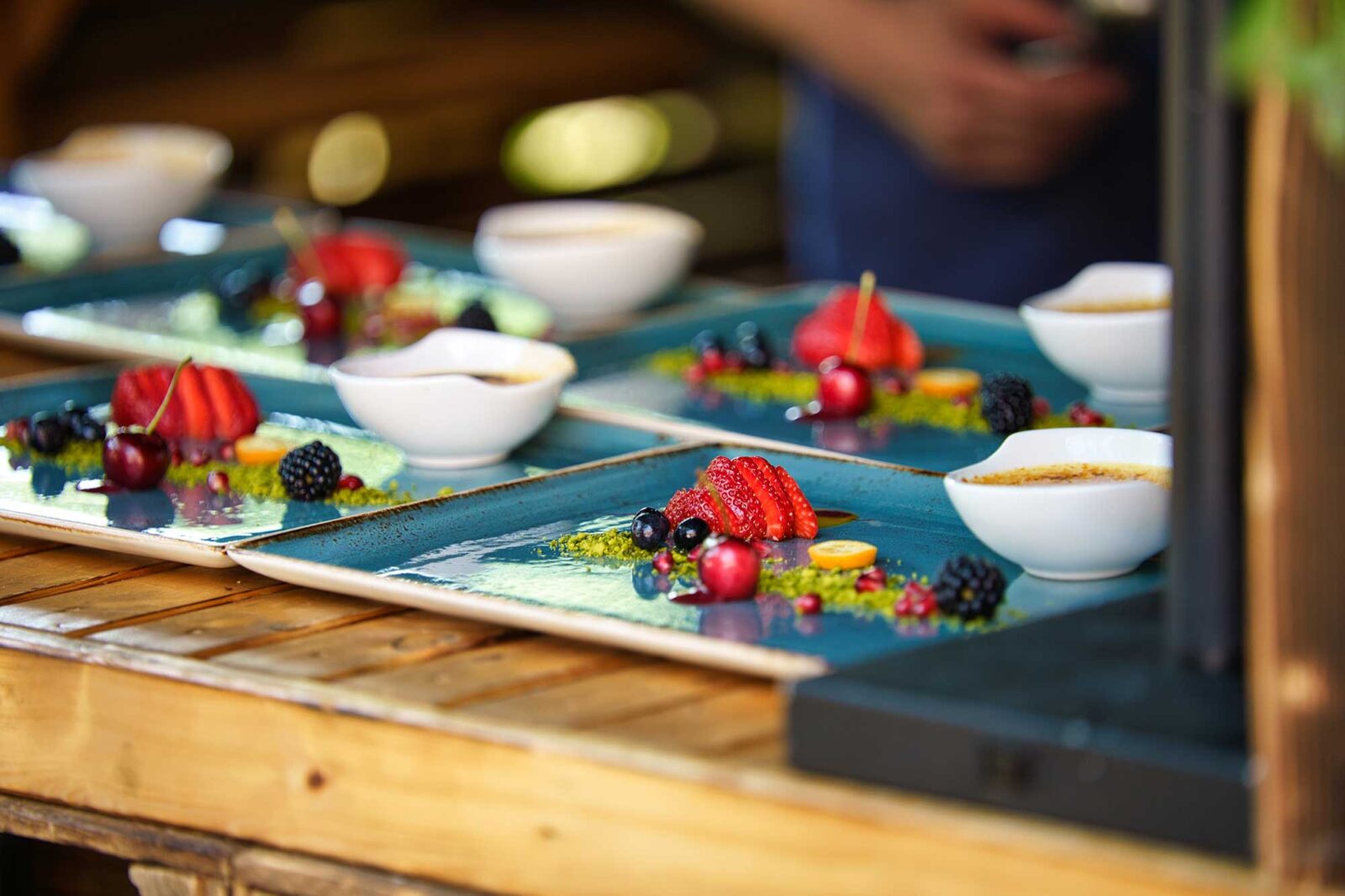 Das Hauptmenü auf der Grundlage von drei Fleisch-/Fischsorten, die Beilagen aus verschiedenen Salaten und Soßen und – last not least – zwei Sorten Nachtisch ein perfekter Genuss.